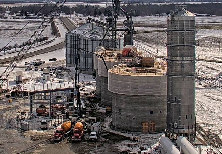 Construction progress continues with the Kindred elevator project. The receiving building is taking shape and electrical equipment is being installed in the MCC building. The slip forms are in the final stages of completion; they are being enclosed so they can be heated during the construction.